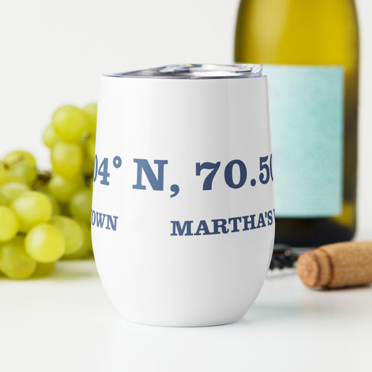 Oak Bluffs Lat and Long Wine tumbler